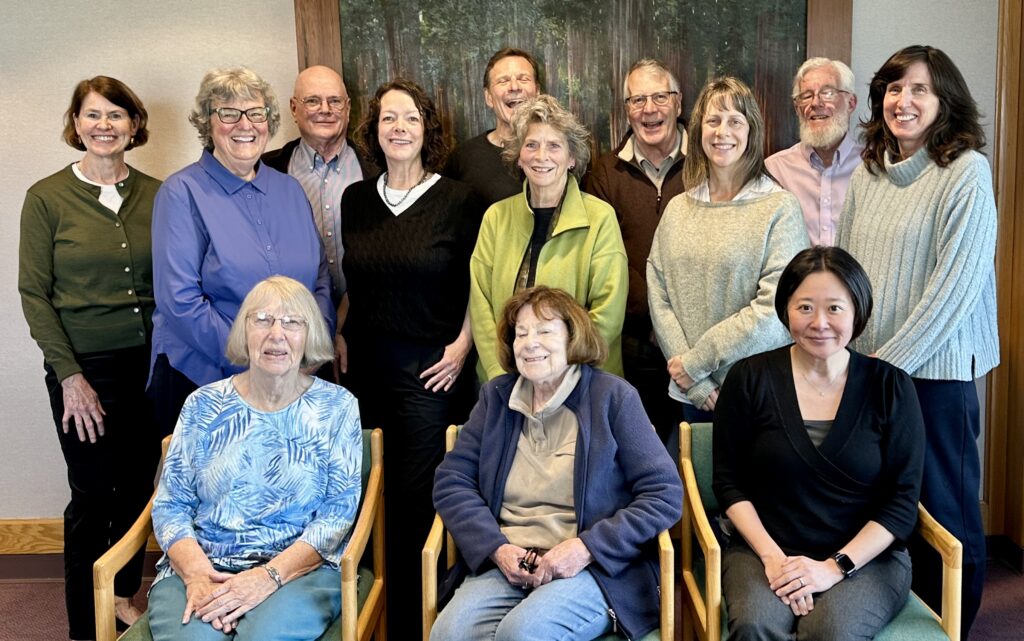 Back row: Maggie Fleming, Susan O’Connor, Tom Mays, Elizabeth Murguia, Alison Talbott, Library Director Chris Cooper, Lee Leer, Peter LaVallee, Erika Wright, Jack Irvine, Pamela Dressler. Front row: JoAnn Bauer, Jane Callahan, Cindy Hori.
